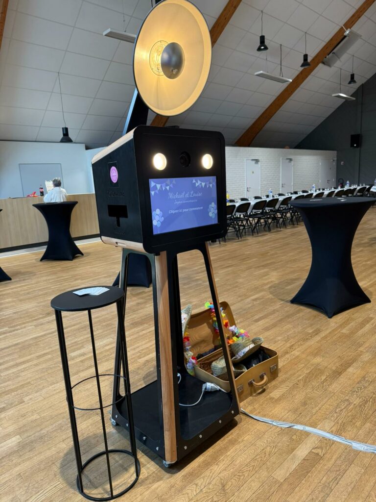 Camille Happy Event vous propose un photobooth moderne et intuitif, à installer directement sur le lieu de votre événement. Grâce à ses fonctionnalités simples, vos invités peuvent se prendre en photo en toute autonomie, avec ou sans accessoires.